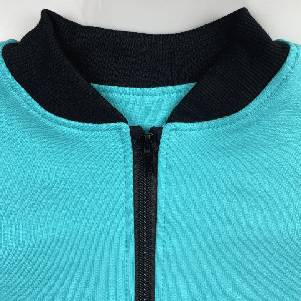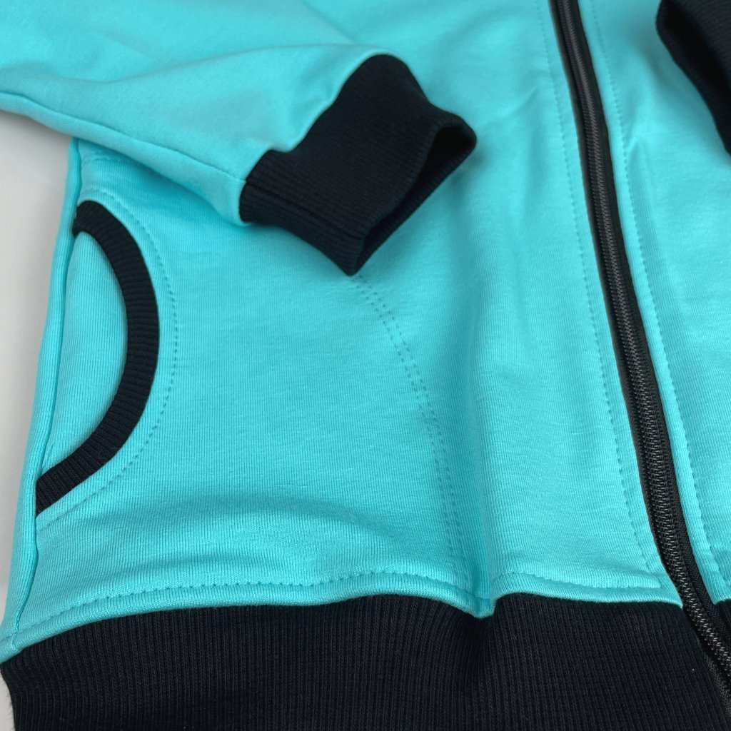 Mikina je moderního bomber střihu doplněná černými žebrovanými patenty. Má zapínání na kovový zip. Také má dvě kapsy, lemované černým žebrovaným lemem. Barvy mikin jsou totožné s barvami pudláčů, takže je lze zakoupit i jako soupravu. Výborně se kombinují s jednobarevnými tričky, ale také se sukněmi a šaty.