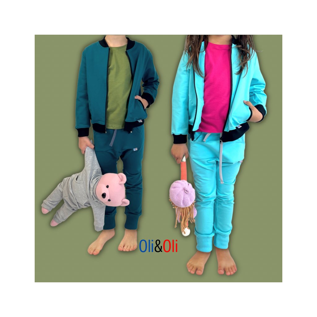 Jednobarevné dětské mikiny od slovenského výrobce Oli&Oli s černými doplňky a dvěma kapsami.