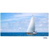 Vyplujte do klidu s naší samolepicí textilní tapetou – Plachetnice na moři. Tento design zobrazuje zářivě bílou plachetnici klouzající po třpytivém modrém moři pod oblohou plnou jemných oblaků – perfektní únik do každé místnosti.