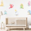 Na samolepce jsou zobrazeny různé druhy exotických ptáků, včetně papouška, andulky, ary a kakadua, každý z nich je vykreslen v živých, pestrých barvách s použitím akvarelové techniky. Tyto ptáky jsou znázorněny v realistickém, ale zároveň hravém stylu, který zaručeně upoutá pozornost a rozvíjí představivost vašich dětí.