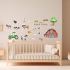 Tento set obsahuje vše, co patří na správnou vesnici – od roztomilých zvířátek, přes čerstvé plody, až po barevný traktor a přívětivou farmářskou stodolu. Všechny motivy jsou tištěny ekologickými latexovými barvami na transparentní monomerický vinyl, který je ideální pro bezpečnou a zdravou dekoraci dětského pokoje. Tyto samolepky jsou nejen nádherné a barevné, ale jsou také jednoduché pro aplikaci a odstranění, čímž poskytují flexibilní možnost, jak měnit dekor podle věkem se měnících představ vašich dětí.