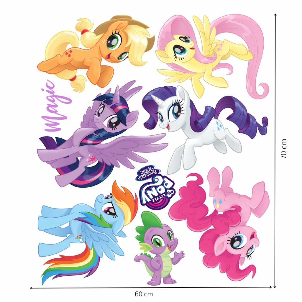 Nálepka na zeď „My Little Pony“ je skvělým řešením! Představuje hlavní postavy z filmu a je vytištěna na bílý matný vinyl, což dodává nálepce profesionální vzhled a čistotu. Nálepka je jednoduchá na aplikaci, takže ji můžeš hned umístit na zeď a okamžitě vidět změnu. Také ji můžeš snadno odstranit, což ti umožňuje přizpůsobit pokoj rostoucím potřebám a zájmům tvého dítěte.