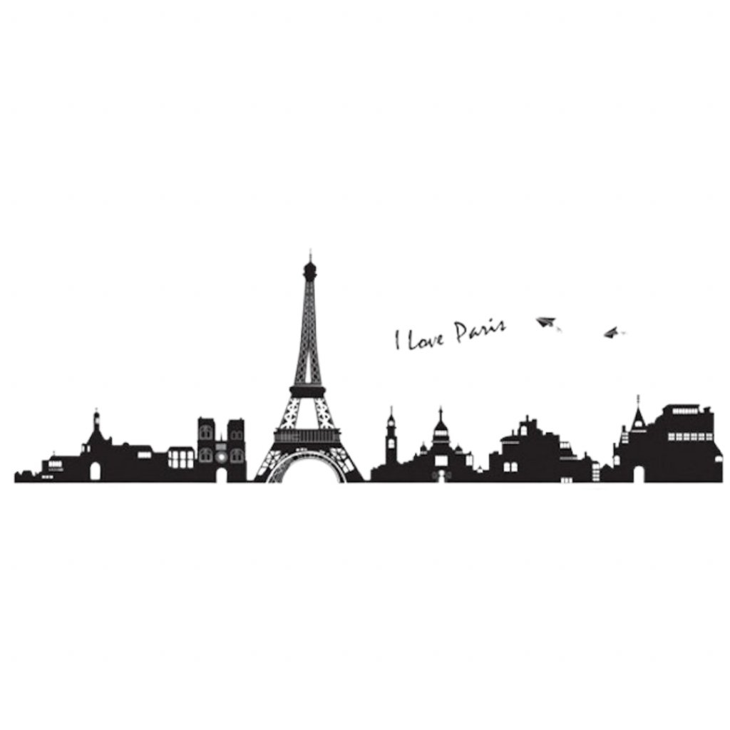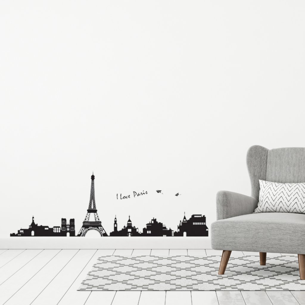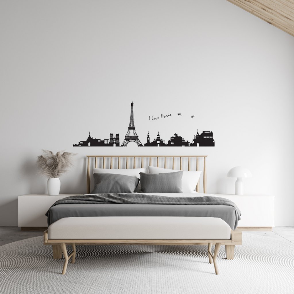 Samolepka na zeď s motivem panoramata romantické Paříže.