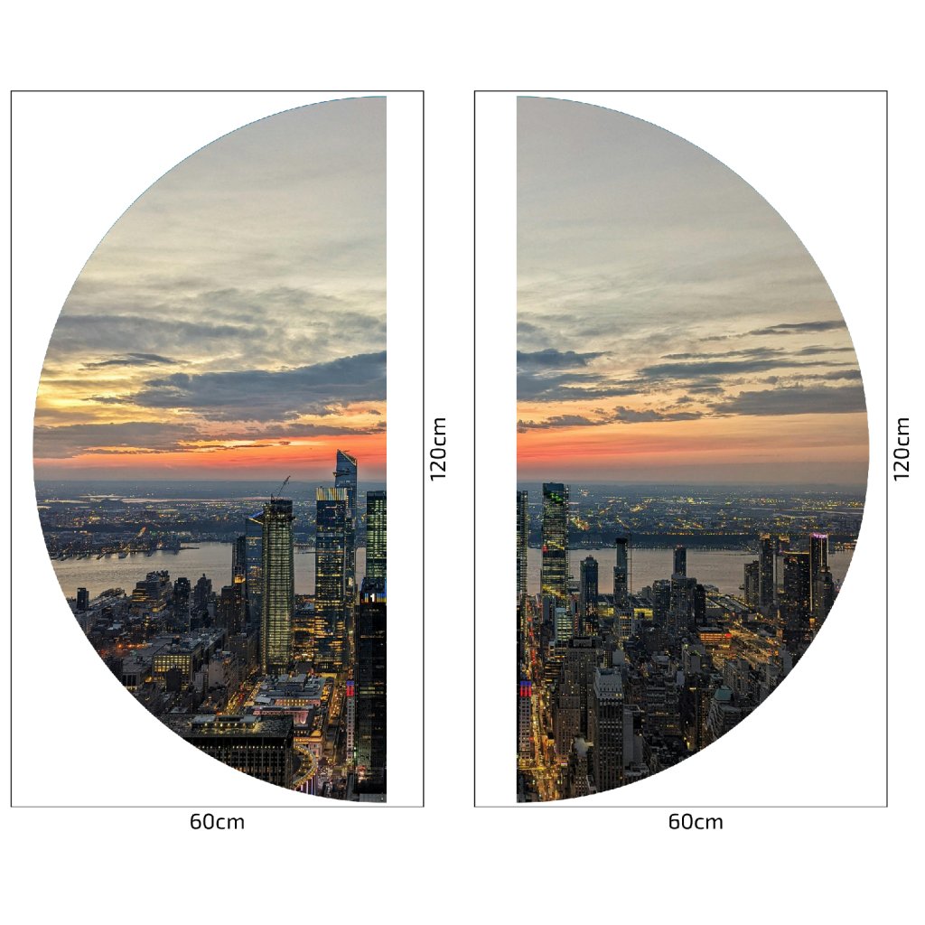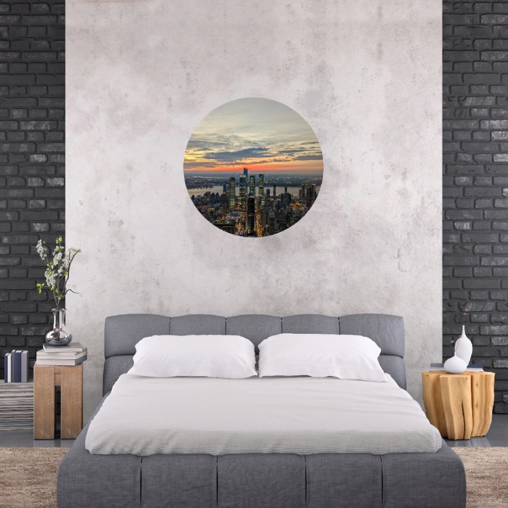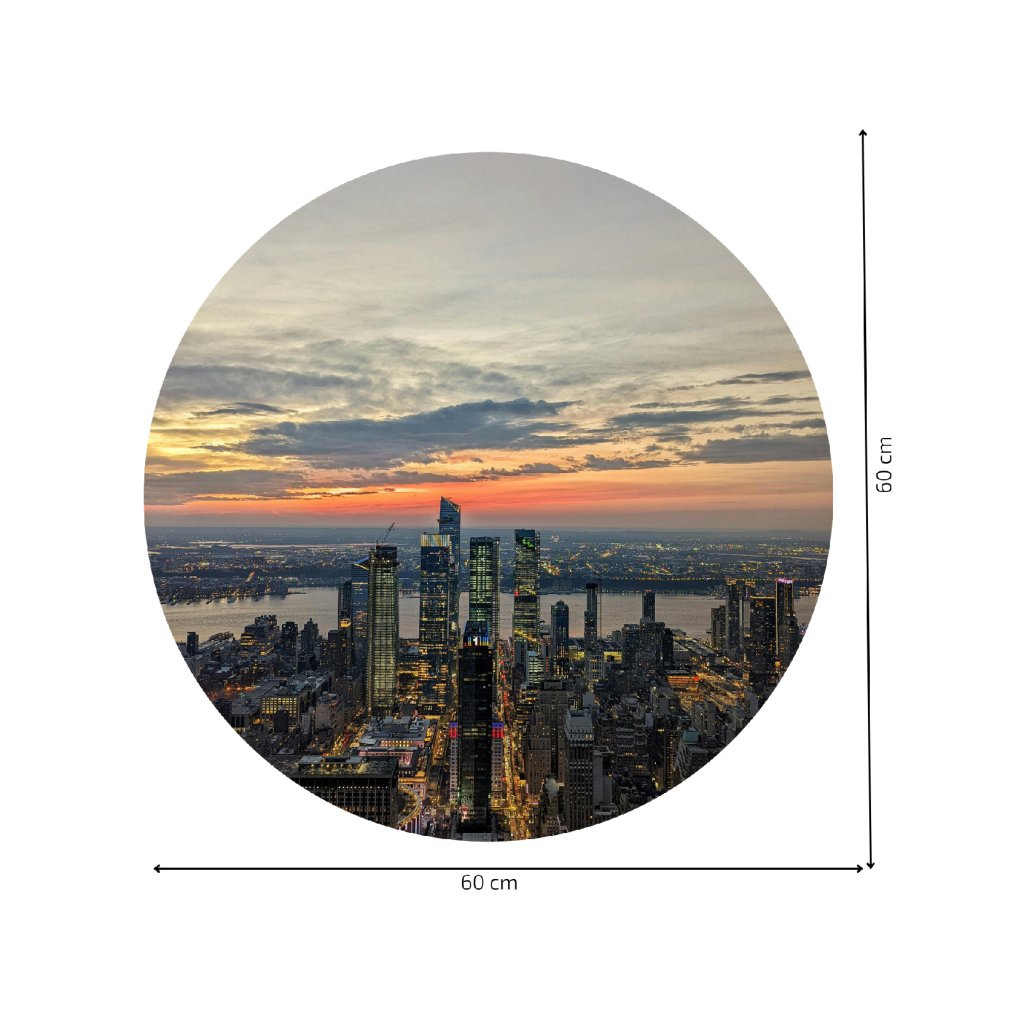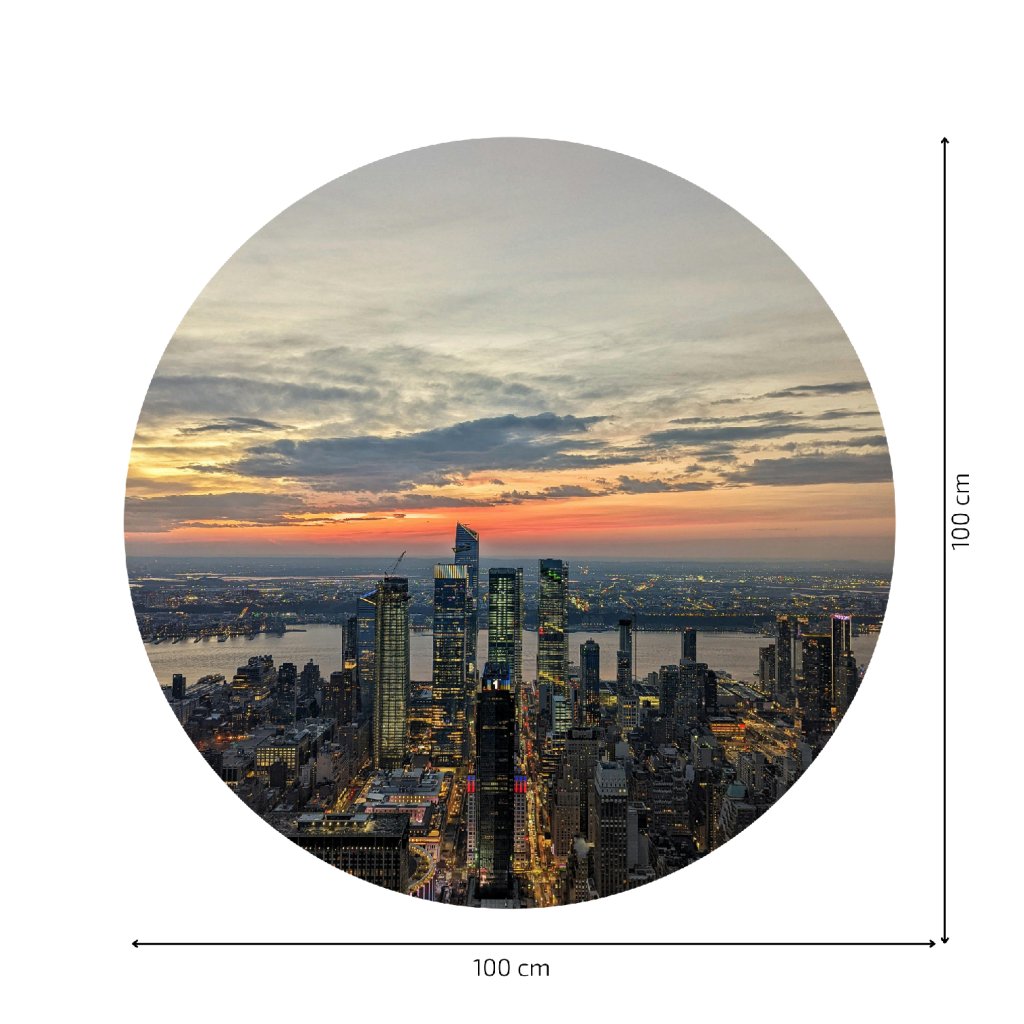 Dopřej svému prostoru dotek New Yorku s naší kruhovou nálepkou na zeď. 🌇🗽 Západ slunce nad ikonickými mrakodrapy zachycuje tu jedinečnou chvíli, kdy se město nikdy nespící mění z denního ruchu na noční dobrodružství. Moderní design, který oživí každou stěnu – od obývacího pokoje až po pracovnu.