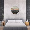 - Design: Nadčasová kruhová nálepka s motivem velkoměsta v západu slunce dodá tvému interiéru energii, dynamiku a špetku světové atmosféry.